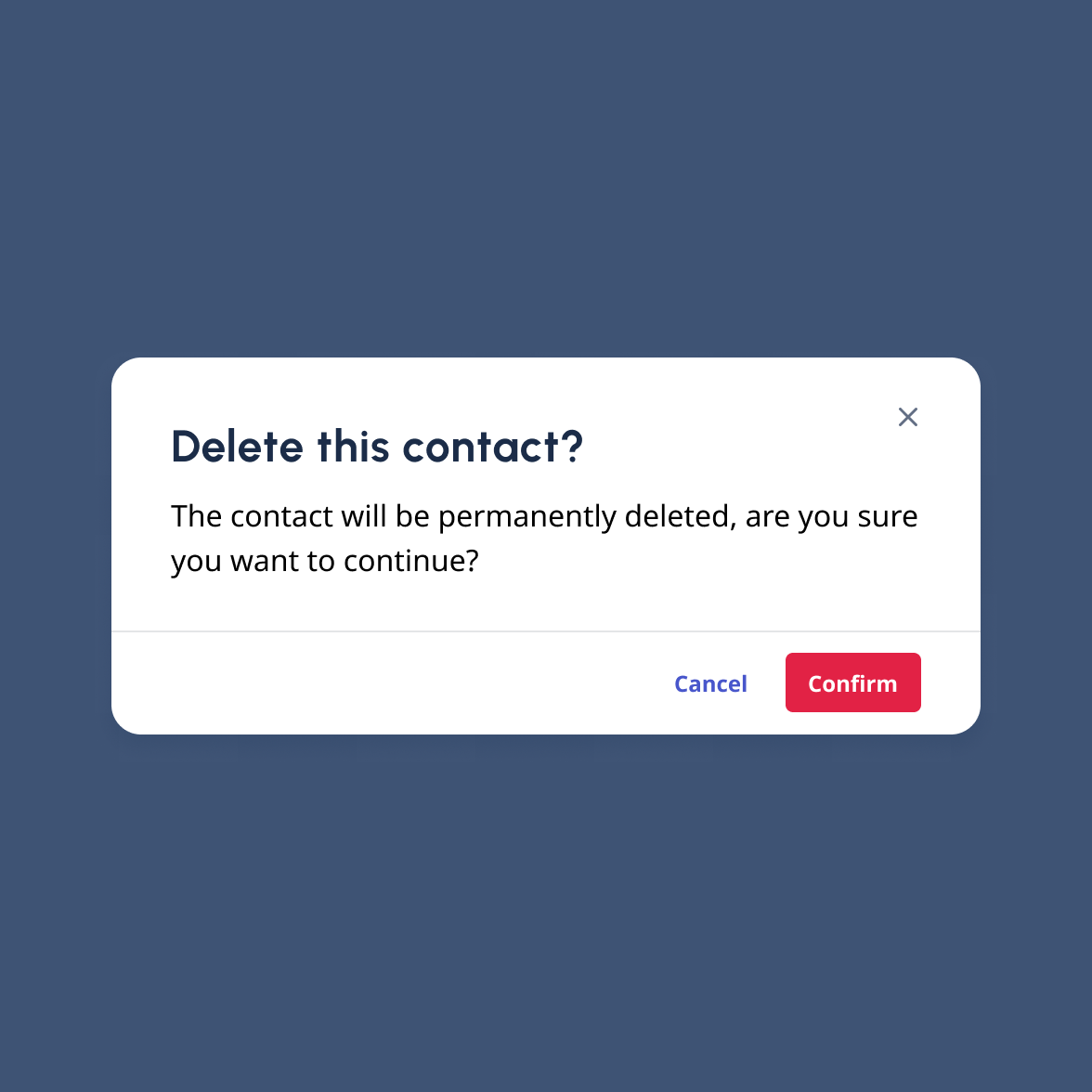 Avoid using labels that don’t explain the action the danger button is about to perform like “Confirm”, “Accept”, or “Continue”.