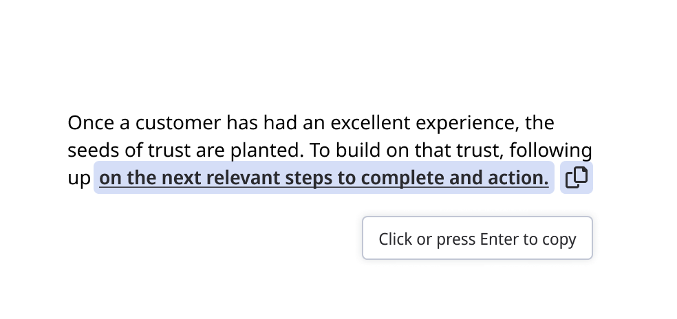 Use copy to clipboard for user actions to facilitate copying a relevant text snippet.
