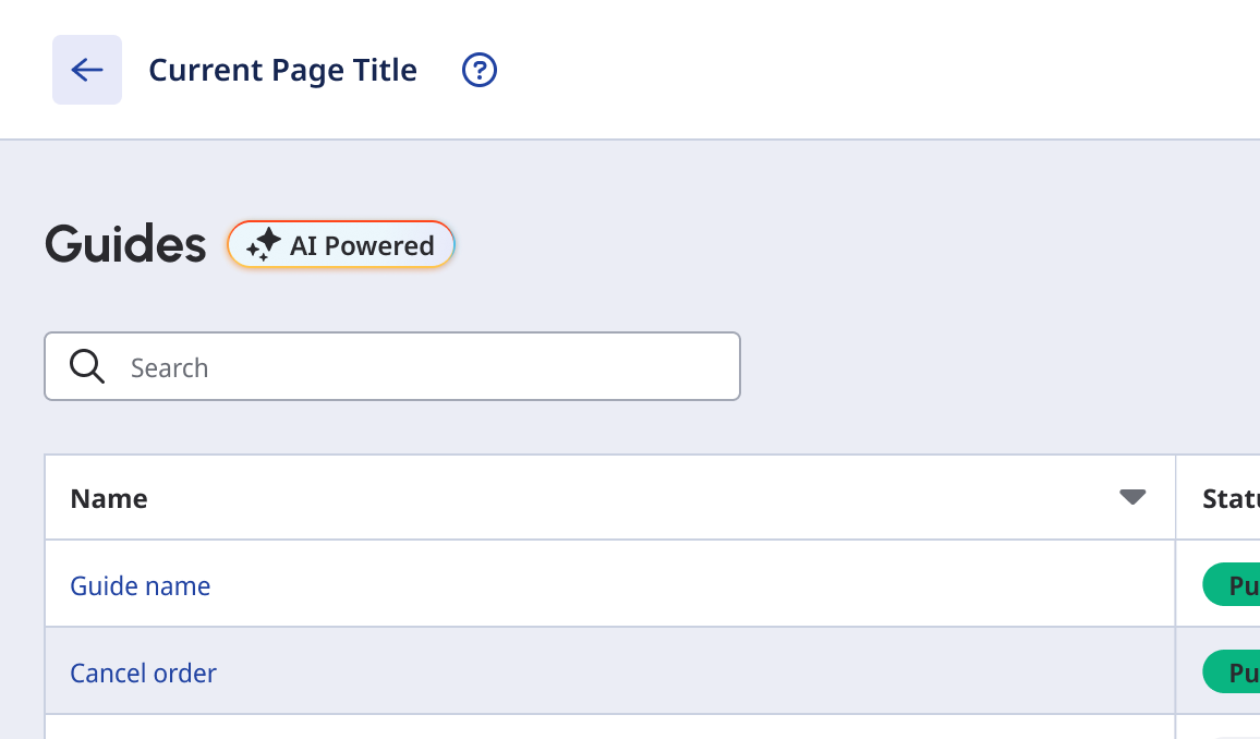 This component is used to drive Transparency into which Genesys products are powered, mostly or exclusively by AI. Not all AI features will have this badge present beside them. This component is reserved for “headline” products and fills a marketing role in addition to driving transparency into the presence of AI.