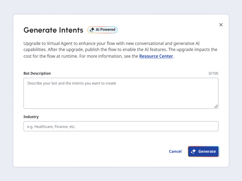 Avoid using the AI badge on a modal header if the feature is not the main feature of the page. For almost all cases, we recommend placing the AI Badge next ot the page header.