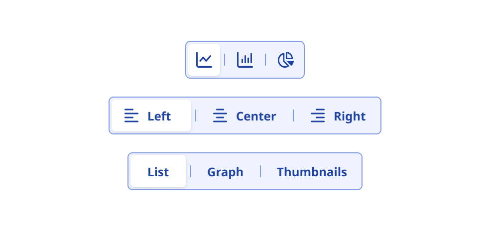 Do not alternate between different content types (Icons, labels, icons+labels) in a single segmented control.