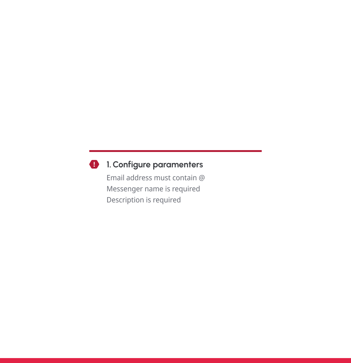 When an error occurs, avoid putting specific validation details (e.g., "Email address must contain @") in the helper text of the step. The specific error message should always be displayed inline with the form field itself.