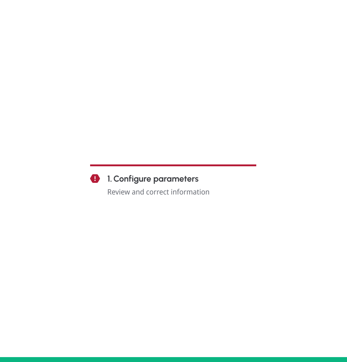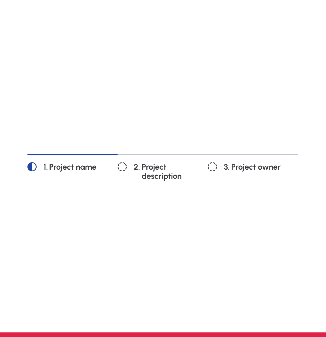 Helper Text during Errors: When a step enters an error state, its helper text should be updated to a clear instructional message, such as "Review and correct the information". This provides a concise, high-level instruction that guides the user's focus.