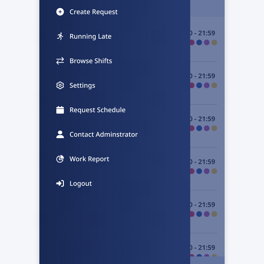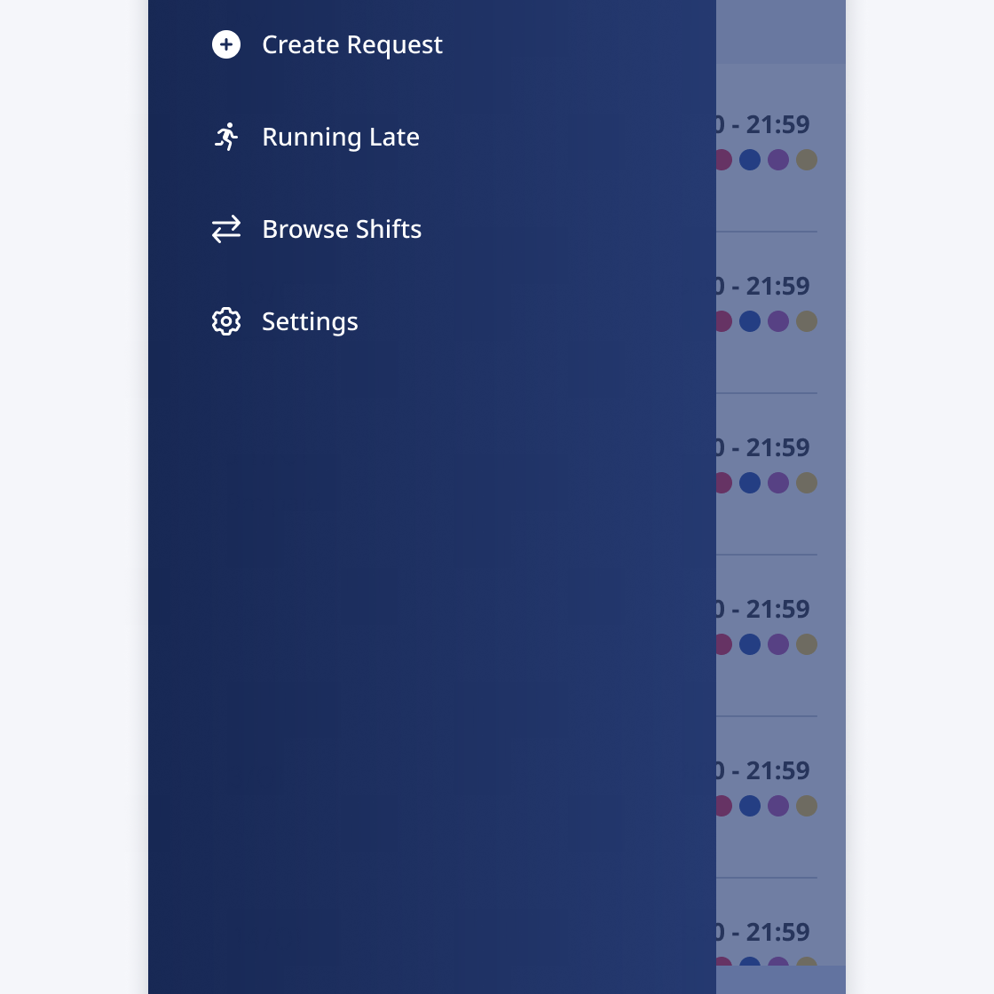 In all our apps, the user profile should be accessible through the side menu view at the bottom of the element. Here the user’s name, image (shown through initials if no profile image is shown) and the user’s status is provided.