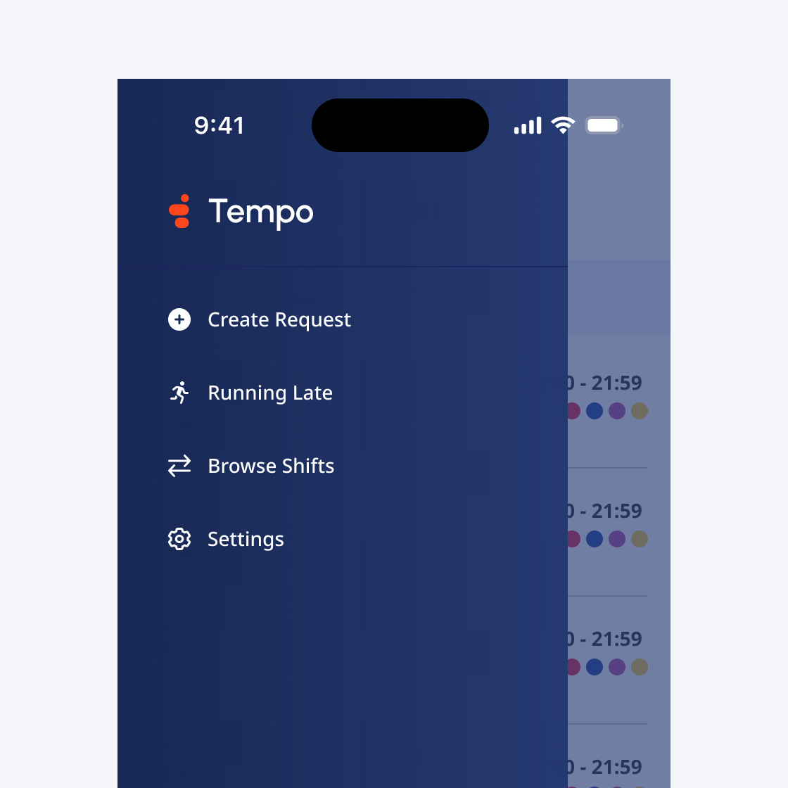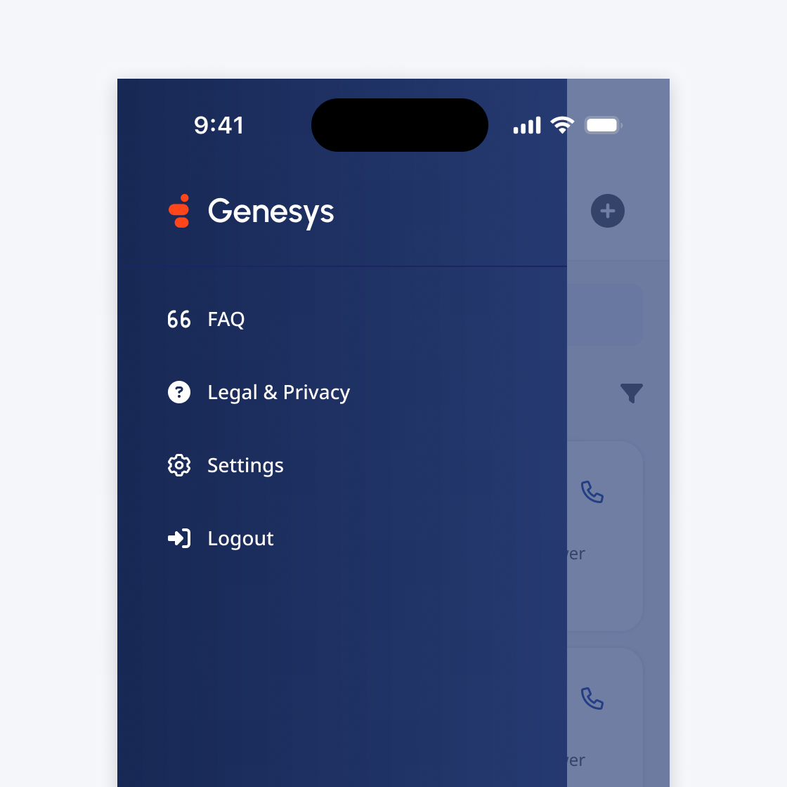Another aspect of this navigation view, is the listing of settings type content from a given app being exclusively contained within the side menu. At no point should an entry point to the settings page/items exist in the bottom tabset of the primary and secondary view of the navigation. All settings tabs are to be listed in this side menu view.