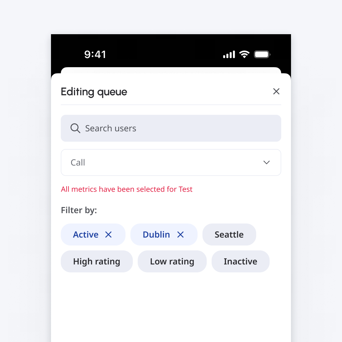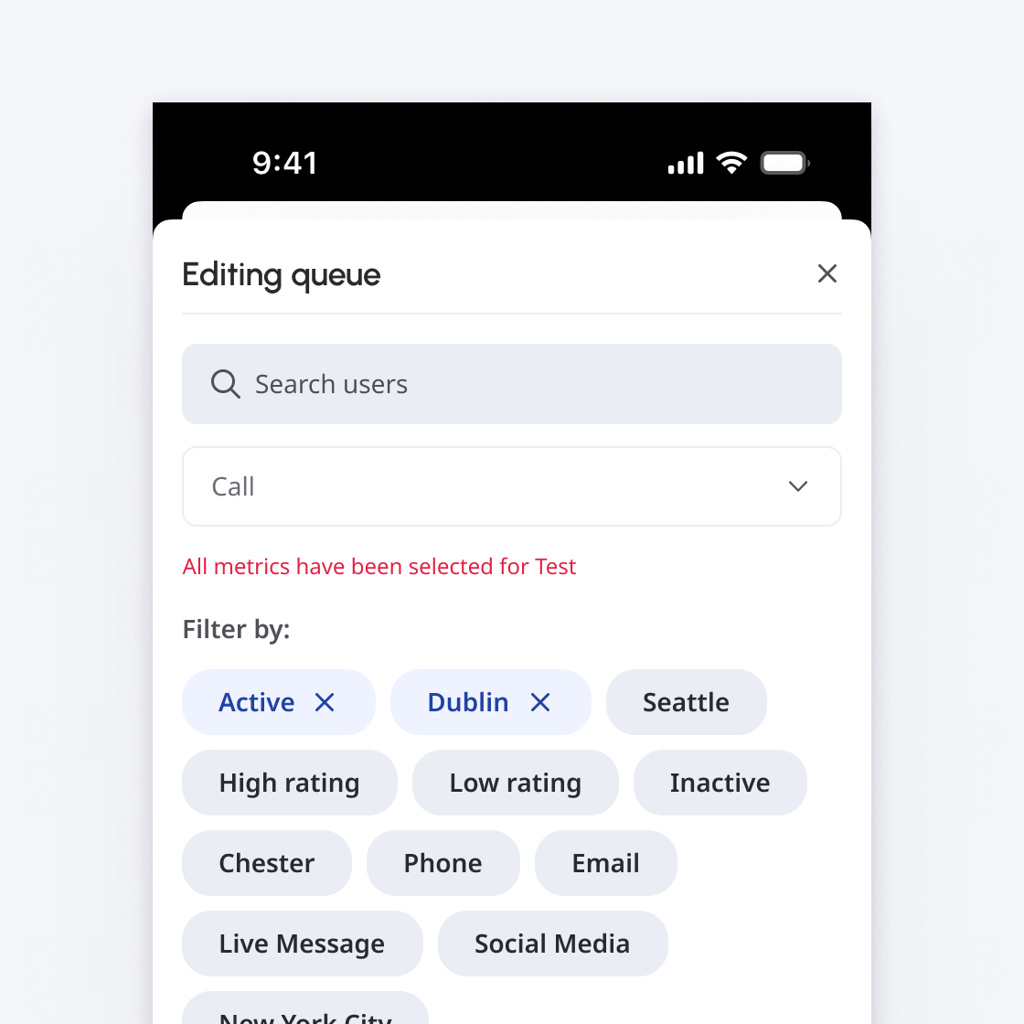 Chips should be included with a relevant label along with active chips being shown first.