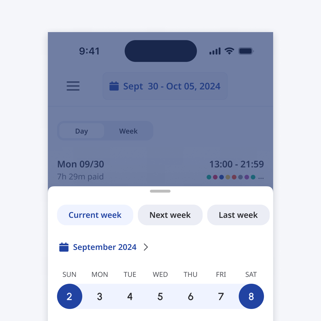The date range selector is split into two parts, the “condensed” field and the “expanded” state which is nested inside a medium sized sheet.
