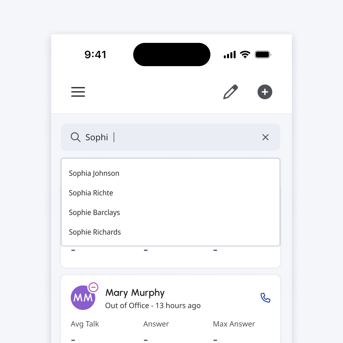 - Like the desktop experience, there are three types of search input: placeholder, populated and disabled.